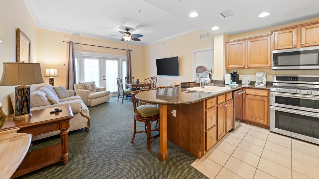 This condo is located in Reunion Resort, where you will have access to Reunion comminity pools - one just steps away, and Reunion Resort restaurants.