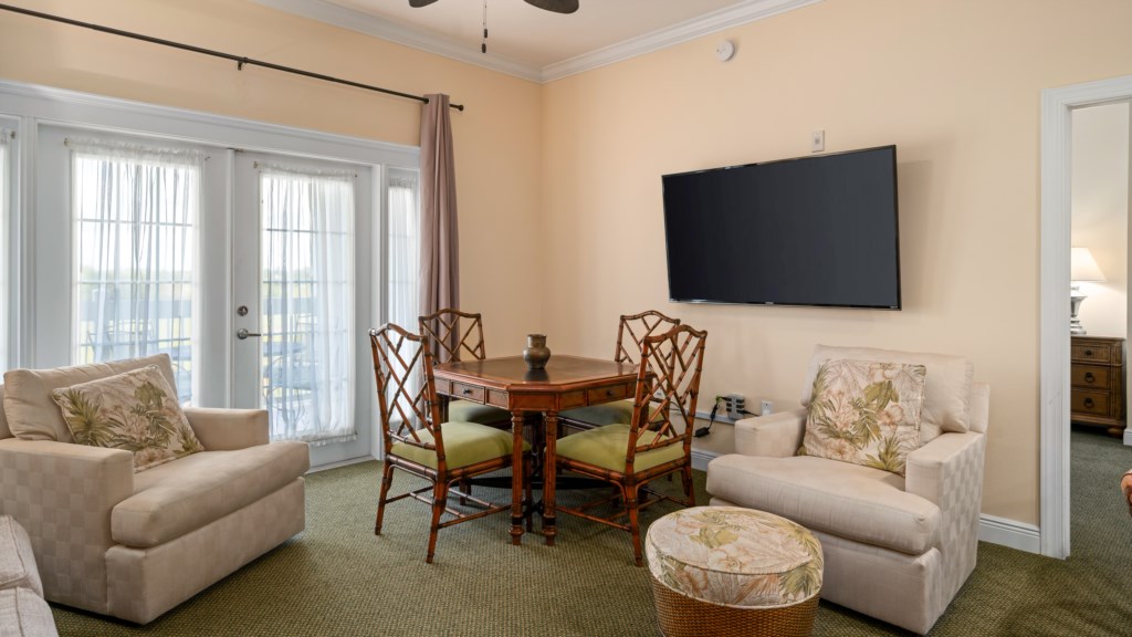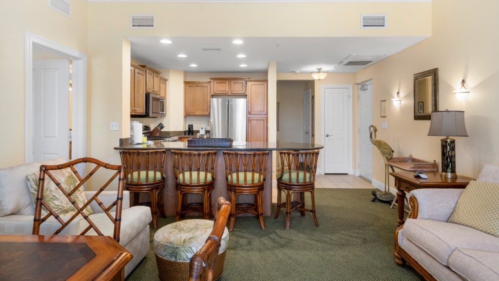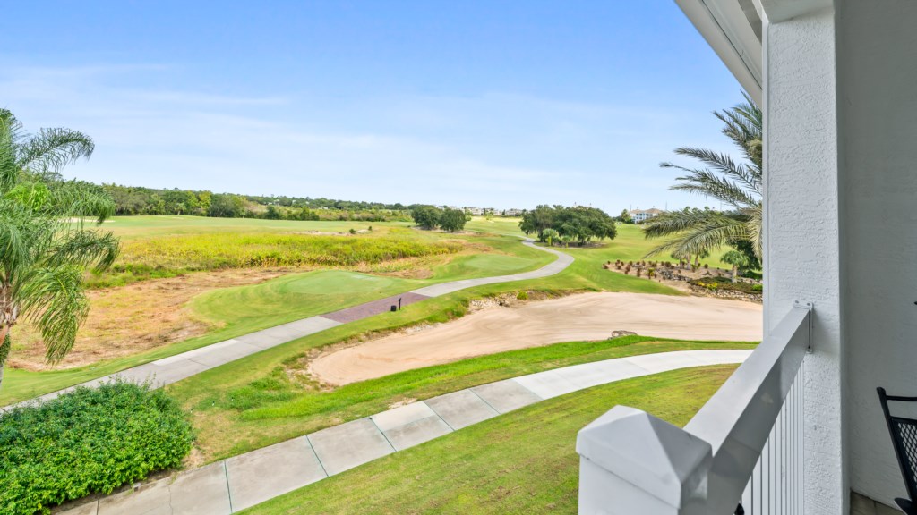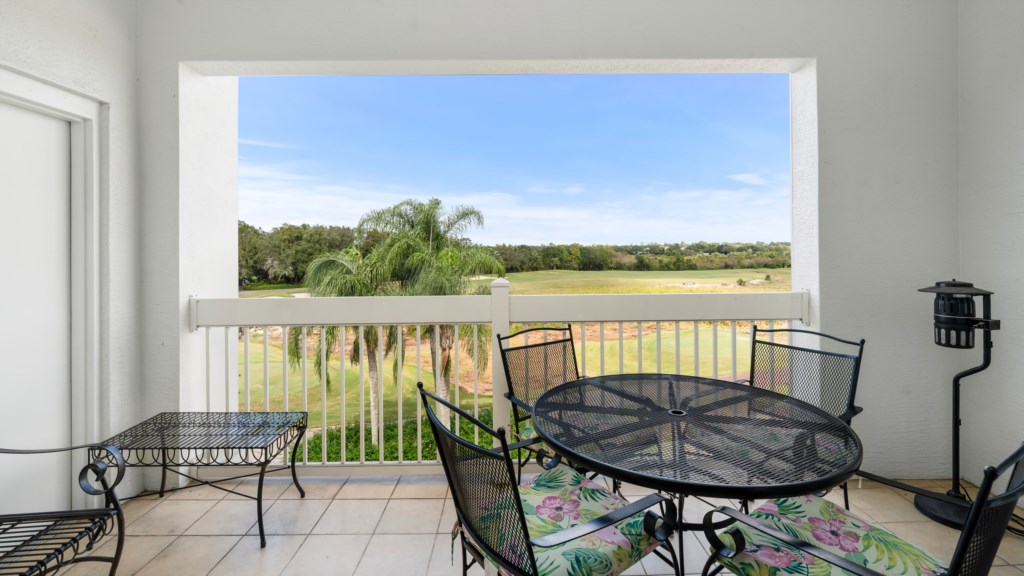 This top-floor unit (elevator available) boasts 2 terraces with amazing golf course views overlooking the Arnold Palmer course. Have a drink while taking in the view!