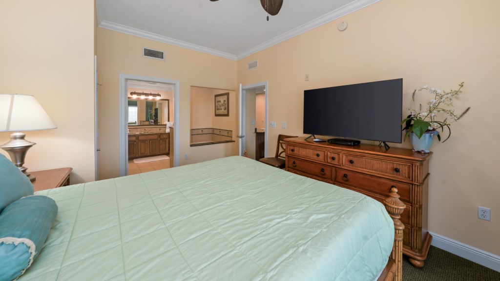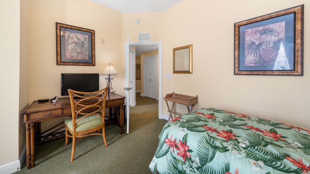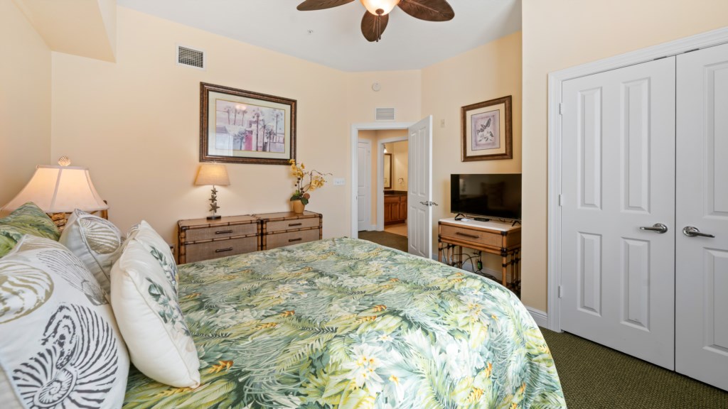 Unwind in the privacy of your own bedroom this vacation! The primary bedroom has a queen bed and TV, connected to an ensuite bath and balcony. Around the corner is another queen bedroom - relax and watch a favorite TV show before falling asleep. The kids will have their own bedroom with 2 twin beds and TV. All of this with plenty of available parking!
